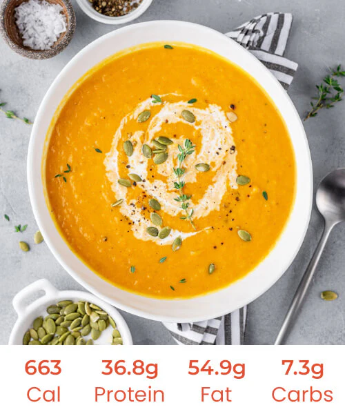 Indulge in our Pumpkin Soup with Middle Eastern Spiced Grass Fed Beef Mince, made with australian grass fed beef mince, butter, homemade spice mix and other carefully selected premium ingredients. This healthy and gourmet meal is perfect for anyone looking for a artisan dining experience at home. Crafted to satisfy your cravings without compromising your health goals.